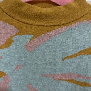 Yellow/blue/pink abstract design- great with jeans or cream colored pants!