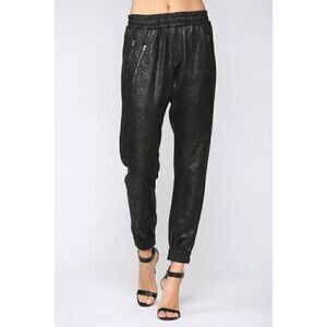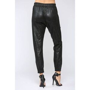 Classy yet fashion-forward joggers feature a snake print on faux suede for the contemporary street style look.