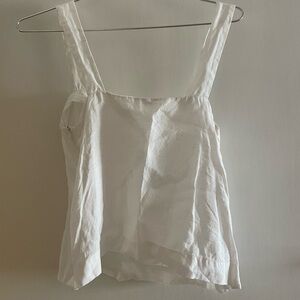 Cute linen tank/shell with side zip. Has a loose, casual fit. Perfect with jeans or with a skirt. Looks great under a blazer!