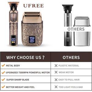 🧿7500RPM POWERFUL MOTOR - Hair clippers and razors are powered by a high-performance motor made in Japan. With 7500RPM and sharp blade, our machines can easily handle even the thickest and coarsest hair. Plus, our metal construction adds a touch of luxury and durability to your grooming experience.