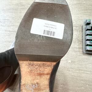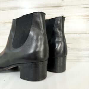 Fatta A Mano Women Black Leather W/ Stretch Sides Rounded Toe Ankle Booties 36