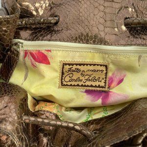Fatto a Mano By Carlos Falchi faux leather Metallic Golden large hobo hand bag