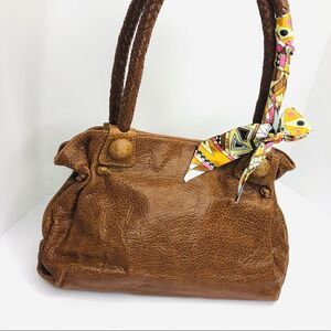 Fatto a mano by Carlos Falchi Vintage Genuine Leather Satchel w Accent Scarf