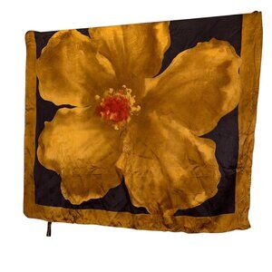 Fattorseta ITALY 100% SILK neutrals HIBISCUS golden brown black scarf ha…