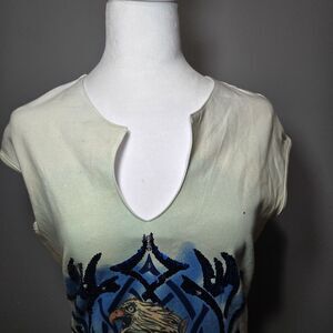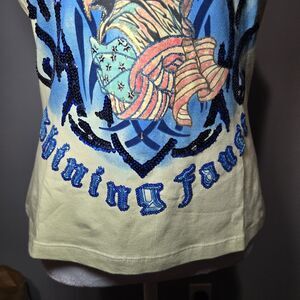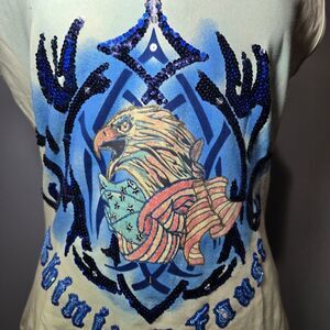 Faust Tank Size 42 Eagle USA Flag Sequin Y2K V Neck