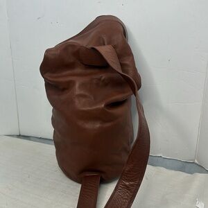 Buttery soft Calfskin Leather in a rich brown with a silver tone buckled belt closure at top