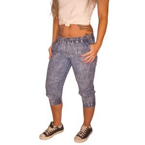 Good condition cotton acid wash faux looking denim capris by Love Tree size medium. No rips stains or tears.