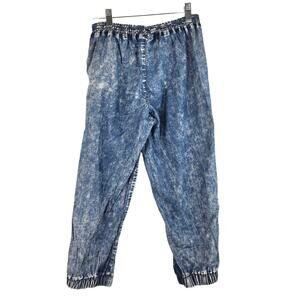 Faux Acid Denim Pants Womens Medium Joggers Hipster Grunge Preppy Skater Pockets