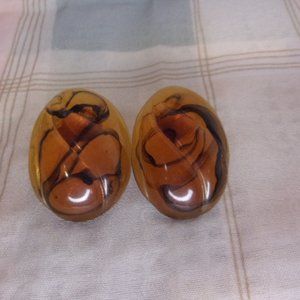 Faux amber plastic oval pierced earrings, unknown maker, nice condition, very pretty, 1980s era.