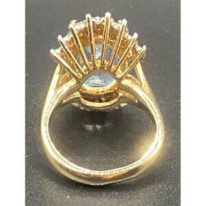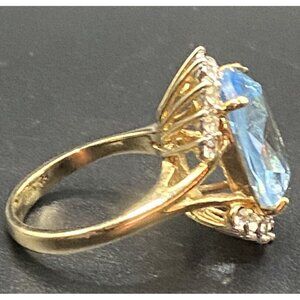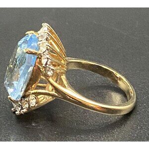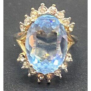 Faux Aquamarine Ring CZ 18K GE Yellow Gold Electroplate Sz 9 March BDay Cocktail