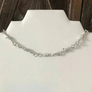 Faux Barbed Wire Silver Punk Goth Alt Grunge Choker Chain Necklace New NWT