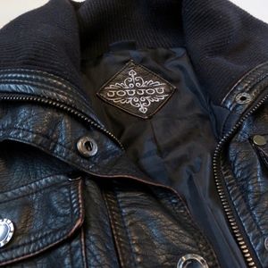 Faux Black Leather Jacket w/ Zippers/Pockets