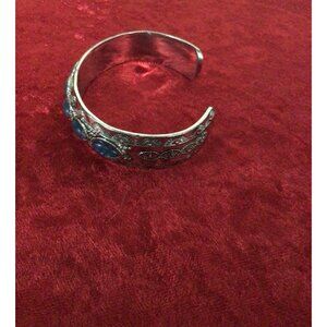 Faux Blue Opal Silver Tone Cuff Bracelet