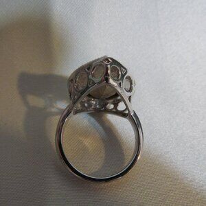 Gorgeous faux blue topaz or faux Paraiba tourmaline silver tone ring
