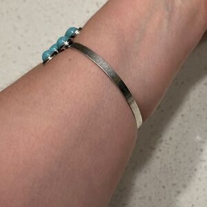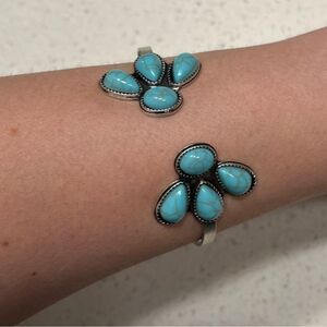 Faux Blue Turquoise Acrylic Beads Western Cowgirl Style Cuff Bangle Bracelet
