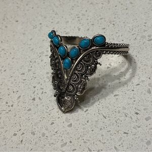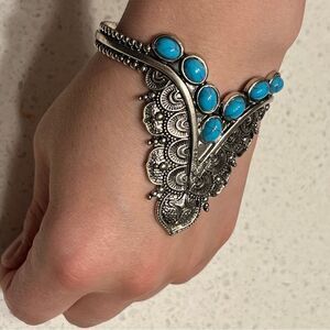 Faux Blue Turquoise Beads Decor Western Cuff Bangle Retro Vintage style