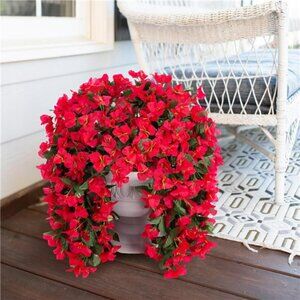 Faux Bougainvillea Flowers Outdoor Hanging UV Resistant Fake Vines Red 2 Pack
