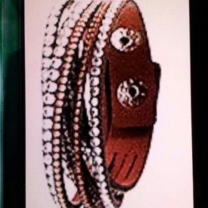 Fashionable faux Brown leather sparkling rhinestone bracelet cuff nowt