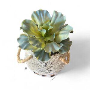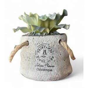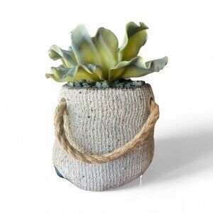 Faux Cabbage Succulent Sack Planter Textured Rope Handle Farmhouse Shabby Chic