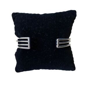Faux Cabochon Peal & Rhinestone Cuff Bracelet Silver Tone OSFM
