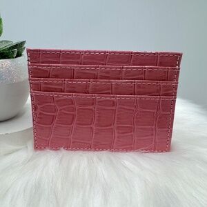 Faux Crocodile Black Embossed Glossy Small Dog Card Holder Wallet in Pink