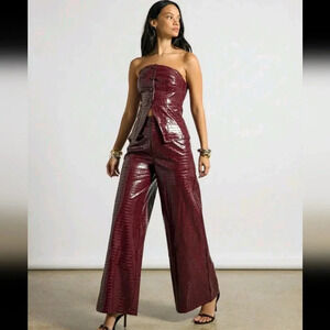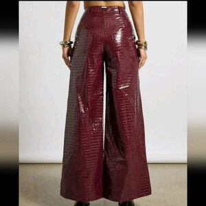 Faux Crocodile Leather Tailored Wide Leg Trouser