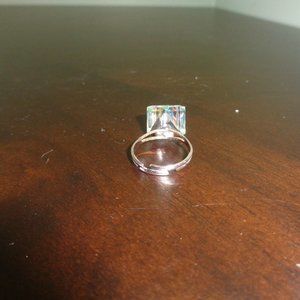 This ring is sparky with unusual design. It's in a great condition and does not show any signs of wear or tarnish. Looks great on the finger and will be a great addition to any party.