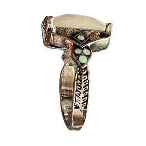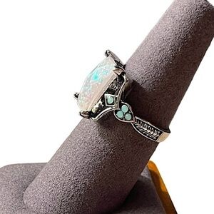Faux Dichroic Glass Opal & Rhinestone Silver Toned Statement Cocktail Ring Size 8. Excellent like new condition.