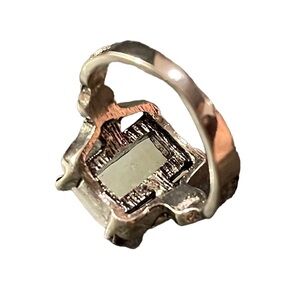 Faux Dichroic Glass Opal & Rhinestone Silver Toned Statement Cocktail Ring 8