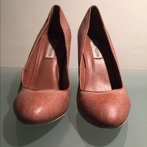 Faux distressed Leather Heel by Steve Madden. Super comfortable and practical. Can be dressed up or down!