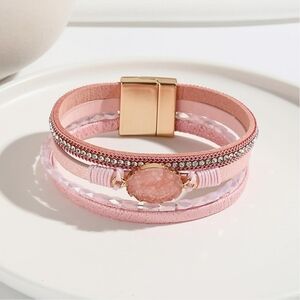 Faux Druzy And Faux Leather Multi-layered Wrap Bracelet