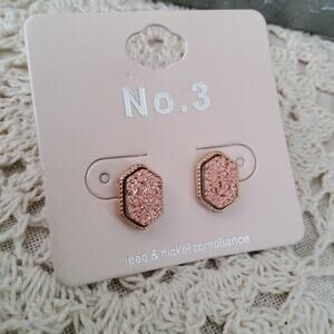 Grab this pair of rose gold peachy faux druzy stone stud earrings now.