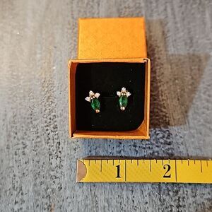 Faux Emerald & CZ Marquis cut stud earrings, goldtone metal. Comes in gift box and organza bag - ready to give as a gift! Excellent pre loved condition, measurements in pics, smoke free home, ships next day. Bundle and Save!