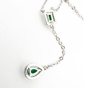 Elevate your style with this stunning lariat necklace featuring faux emerald gemstones framed by sparkling cubic zirconia halos. Crafted in a silver-tone finish, the necklace is marked 925 but is plated.