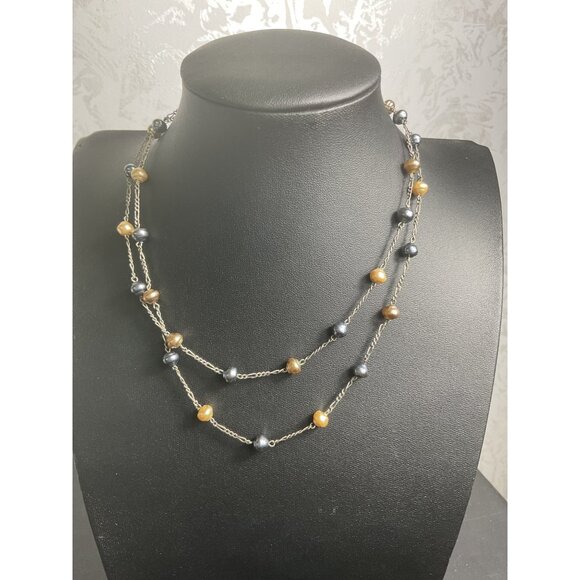 Faux Freshwater Pearl Necklace With Champaign & Blue Pearls