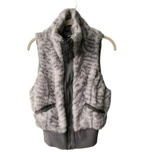 Faux Fur Animal Print Boho Festival Women's Zip Up Vest, M