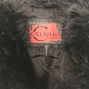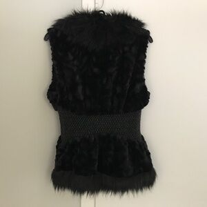 Faux Fur Black Vest, elastic waist, Gold Clasp
