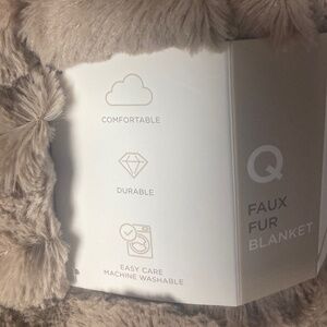 This is a queen sized fur blanket really soft. Durable and comfortable also it is machine washable.