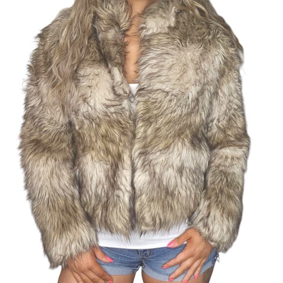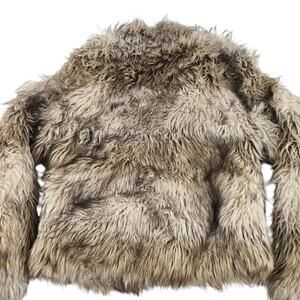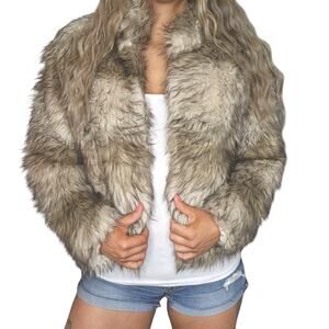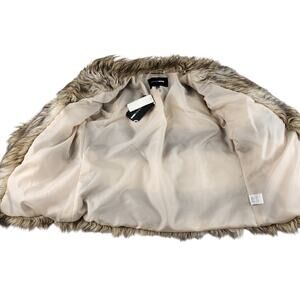Faux Fur Bomber Coat Womens Medium Brown Fuzzy Fluffy Jacket Thick Preppy NWT