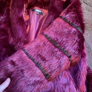 Elevate your style with this luxurious faux fur jacket in a rich burgundy hue. Perfect for adding a touch of elegance to any outfit.