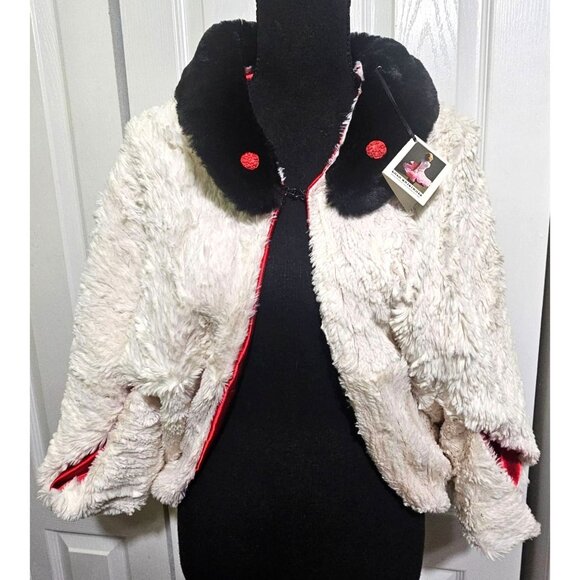 Faux Fur Cape Jacket Coat Vintage Lala Original White Black Red Recycled Cruella