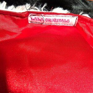 Elevate your wardrobe with this chic faux fur cape. Its versatile design features a plush black collar and stunning red lining, combining elegance and comfort. Crafted by Lala Originals, this piece adds a touch of vintage sophistication, perfect for cooler days when style is paramount.