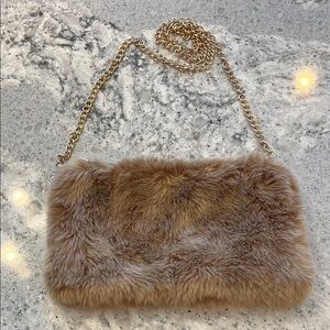 Elevate your style with this chic faux fur shoulder bag. Featuring a luxurious tan color and a stylish chain strap, this bag is perfect for any occasion.