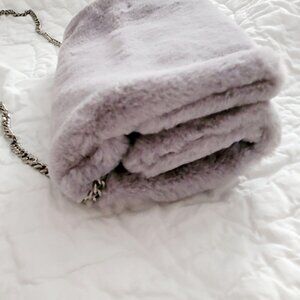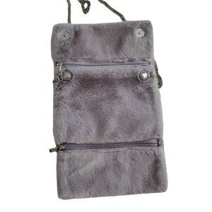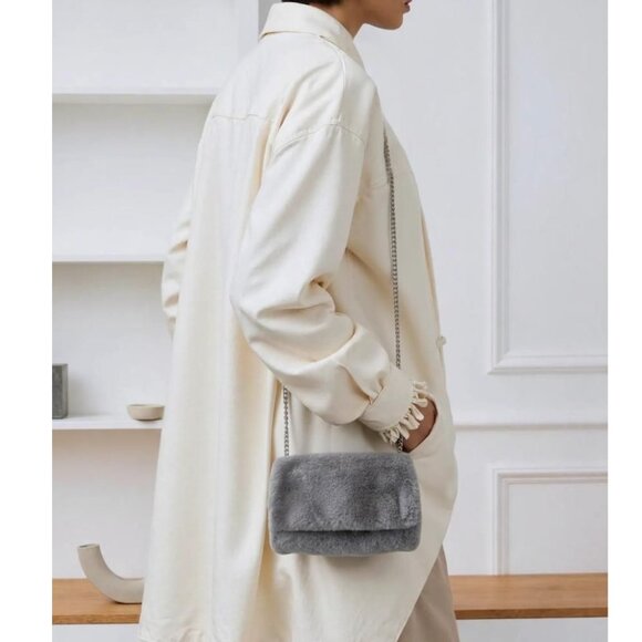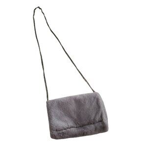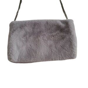 Faux Fur Fold-Over Snap Clasp Silver Tone Chain Gray Clutch Bag By Target