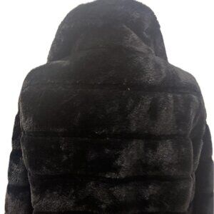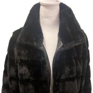 Black, Faux Fur Jacket, Waist Length, Like New, Size L