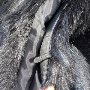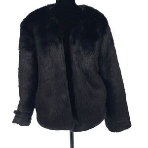 Faux Fur Jacket Hook Eye Front Long Sleeve Lined Black Size XXL