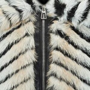Women Faux Fur Leopard Print Cropped Jacket,Fleece Fluffy Leather Lined Zip Up Coat