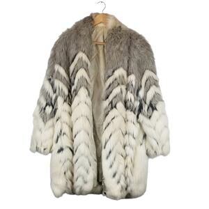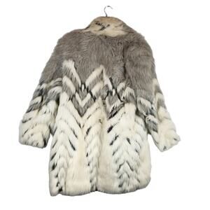 Faux Fur Open Front Jacket Coat Gray Ivory Size L Large