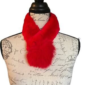 Faux Fur Red Super Soft Neck Warmer Scarf One Size