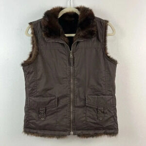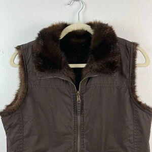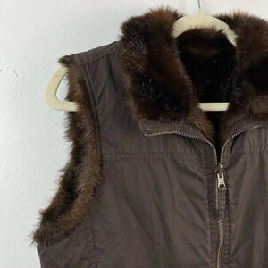 Faux Fur Reversible Vest Jacket Womens S/M Brown Unbranded Pockets Y2K Outdoor